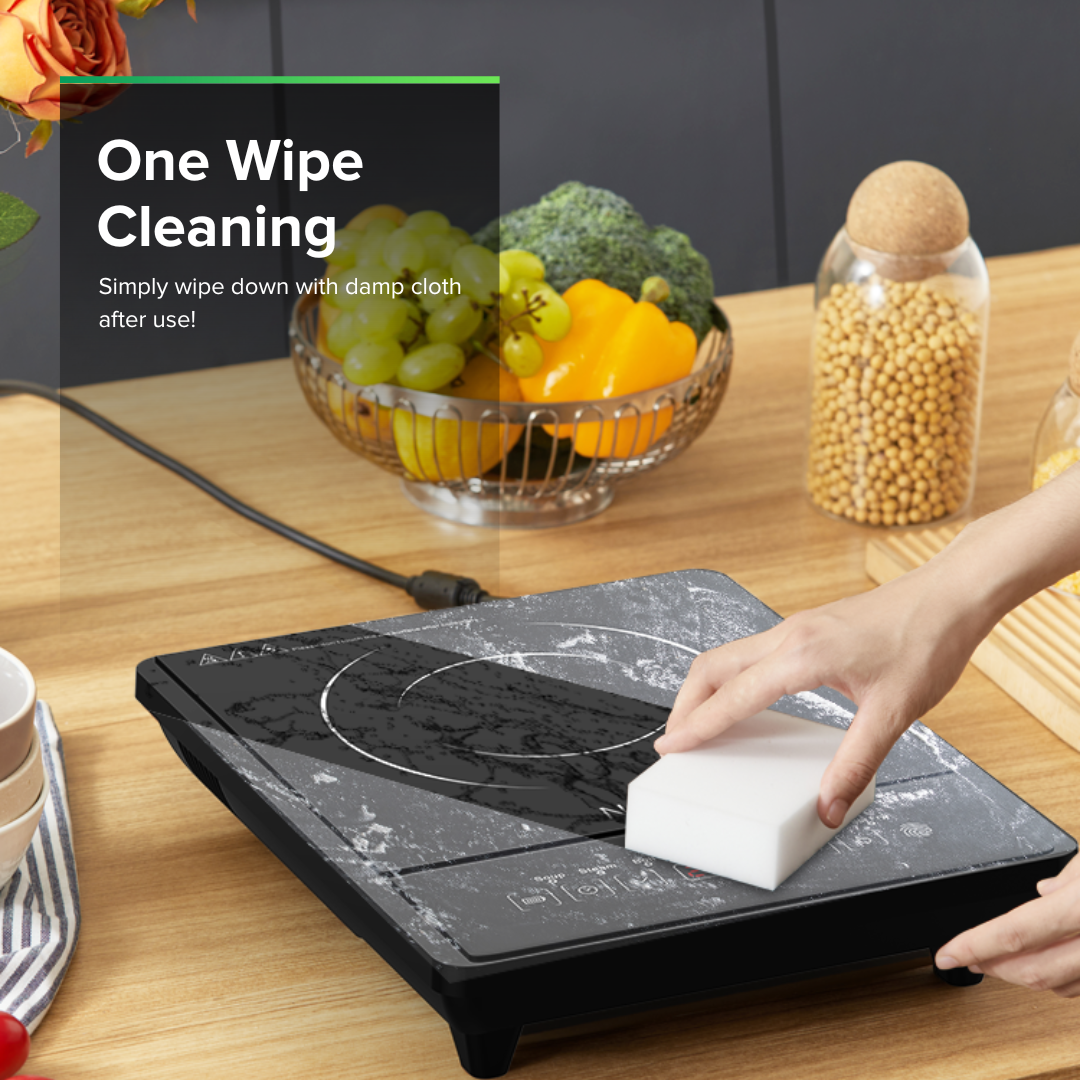 Pemasak aruhan ringan & mudah alih tanpa kekecohan. Kawalan skrin sentuh mudah. Sesuai untuk pelbagai jenis masakan: tumis, goreng dalam, stim, rebusan mendidih, periuk panas/steamboat.
