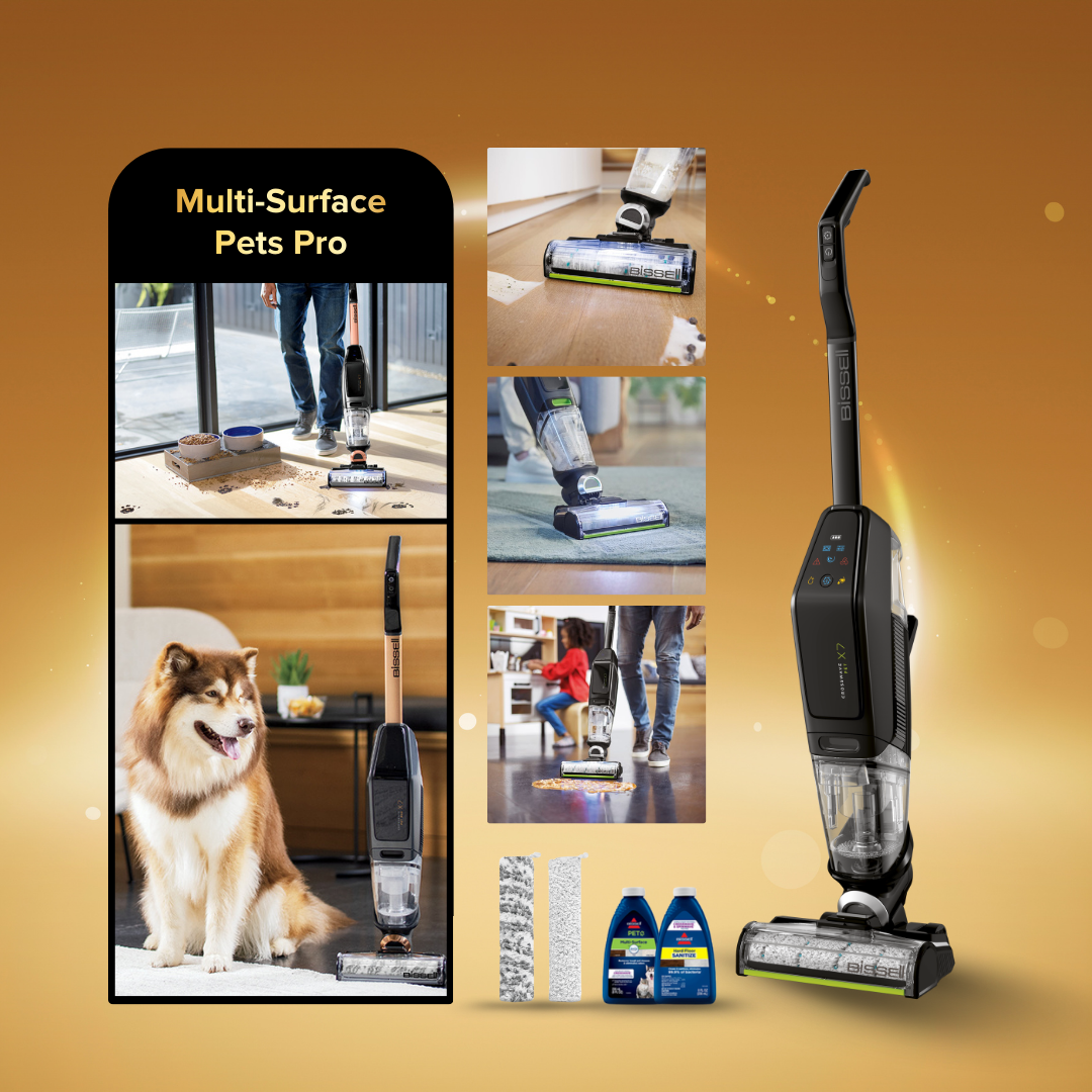 Cleaning up after pets has never been easier. The BISSELL® CrossWave X7 Cordless Pet Pro is a high-performance multi-surface cleaner that vacuums and washes at the same time on sealed hard floors and area rugs, combining multiple cleaning steps into one.