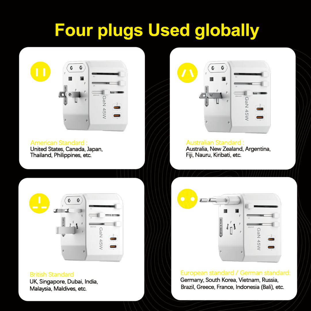 Airbot Air-308MAX Universal Travel Plug Adapter 45W International Worldwide Multi Adapter with USB + Type-C PD