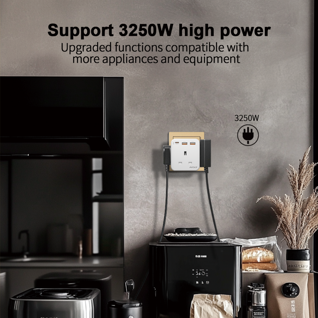 Airbot Air 3B-PD Extension Socket 3250W 3 Outlets Socket Multi Power Adaptor with USB + Type-C PD
