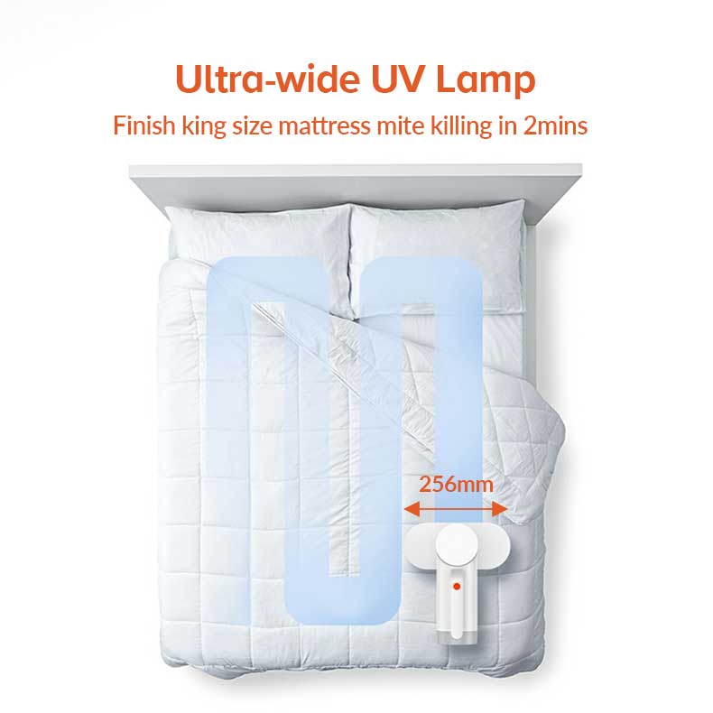 Germicidal UV Light Disinfection Technology: Installed with high efficiency 273.7nm UV light to ensures the rate of killing bed bugs, mites, microorganisms, and bacteria up to 99.9%.