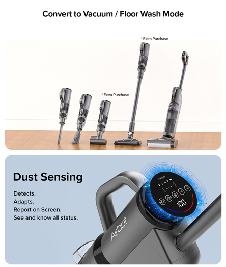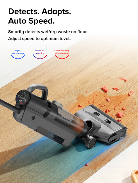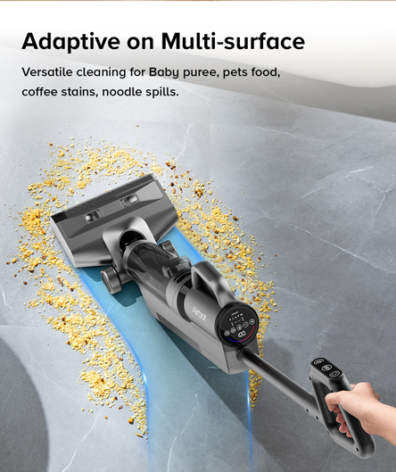 4-in-1, mop + vacuum + sweep + handheld vacuum, removes oily, dry sticky food and drink stains from floor & any dry mess on multiple surfaces! Improved OLED display screen, allows easy monitoring and adjustments of vacuum power levels, battery levels. New self-cleaning feature, roller brush wash itself. Edge cleaning ensures deep cleaning hard-to-reach areas of your house. Includes handheld vacuum & accessories, clean any dry mess on any surface.