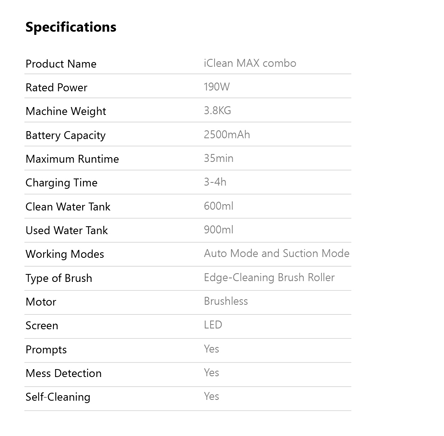 - Suction power | 15000Pa