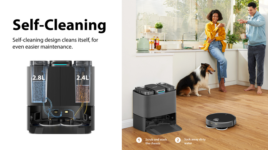 - LCD display screen on dock, user can see animation, know all cleaning status