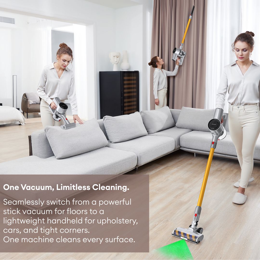 Built-in laser illuminates microscopic dust particles on floors and surfaces, making even the smallest debris visible for a truly comprehensive clean.