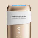 Our device offers 8 adjustable energy levels, allowing you to customize your own temperature comfortability. Our ice cooling technology offers a skin-friendly temperature of 50°F, making your skin comfortable and harmless, and enables IPL pulse light focusing on hair follicles to ensure smooth hair removal.
