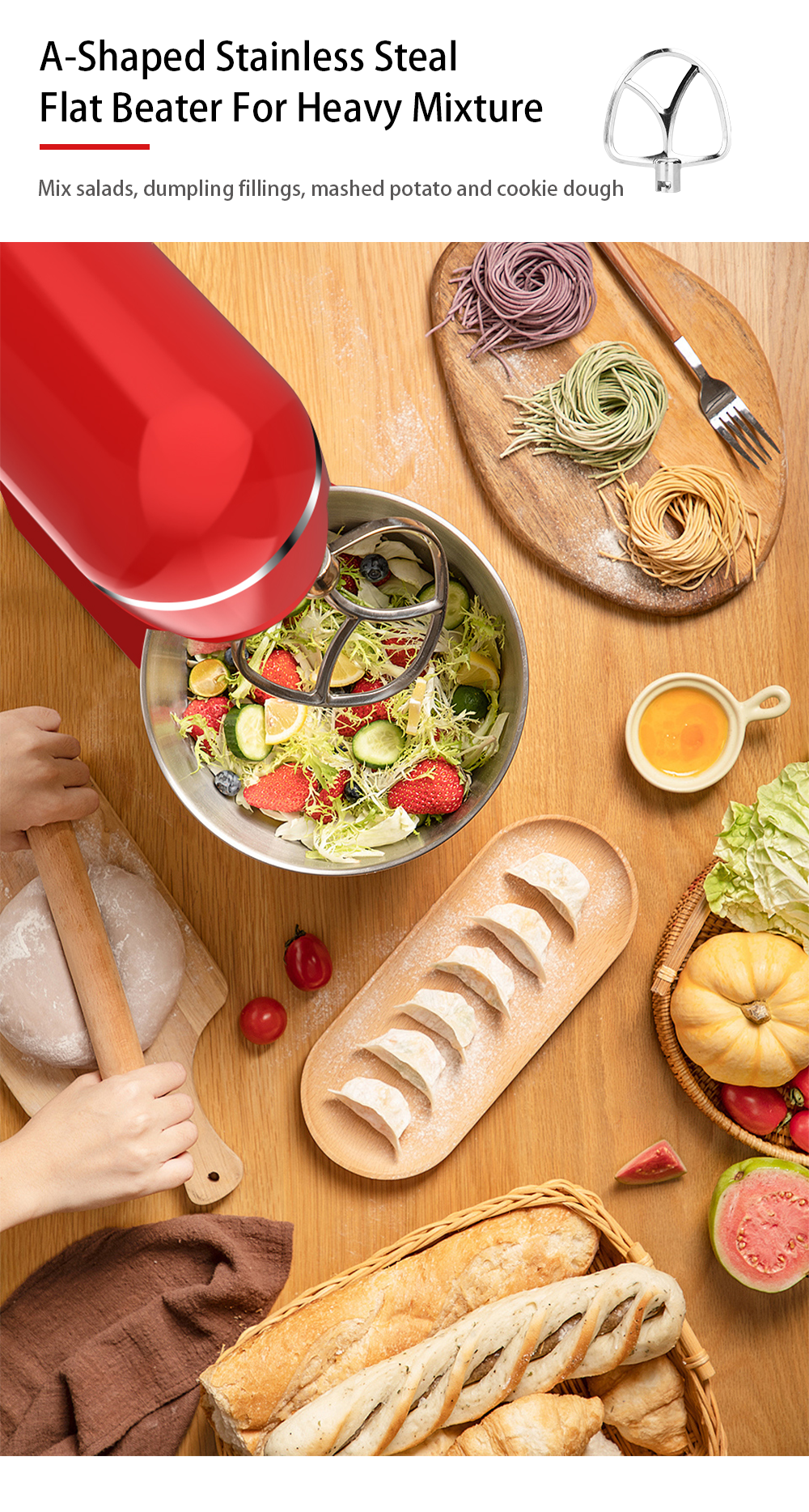 3 Attachments: Wire Whisk, A Shaped Flat Beater, Dough Hook